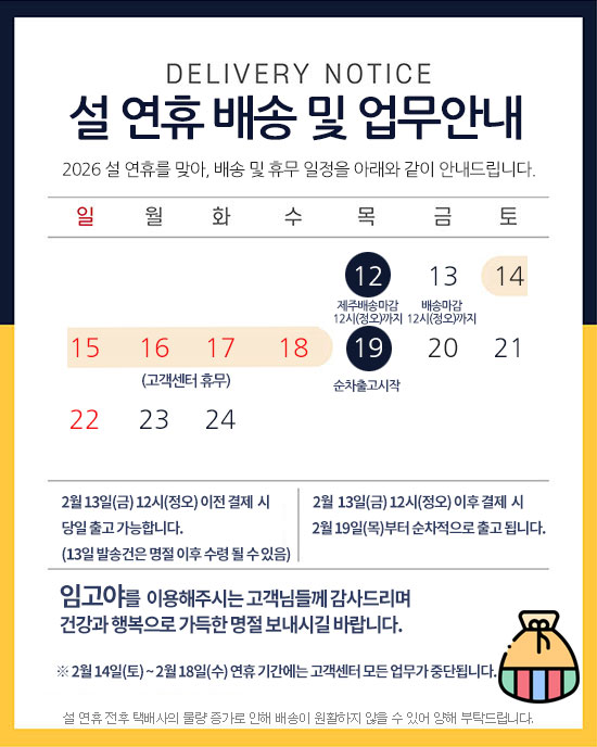 설 연휴 휴무 및 택배 발송 안내