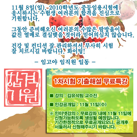 수험생 여러분의 합격을 기원합니다.(11/6)